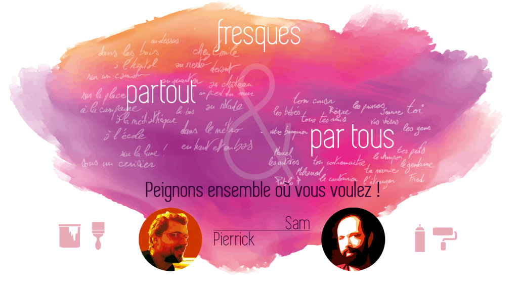 Chacun est le bienvenu pour nous rencontrer, et avec plaisir nous construisons des projets participatifs à travers lesquels nous peignons ensemble, petits, grands, amateurs et/ou avertis.